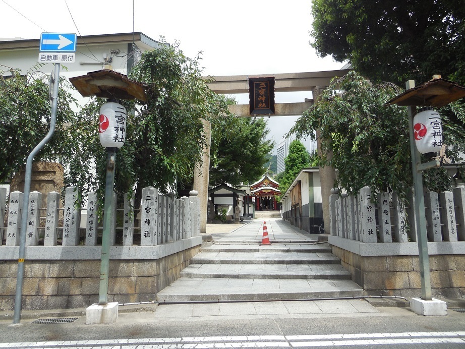 古い記録がなく、創設された時期については不明。伝承によれば、生田神社建立の際、神功皇后が現在の神戸市内の天皇家ゆかりの神々を祀る八社を巡拝したことにさかのぼるという。 境内には「稲荷神社」や「椋白龍社」が置かれている。なお、町名の「二宮町」はこの神社に由来する。