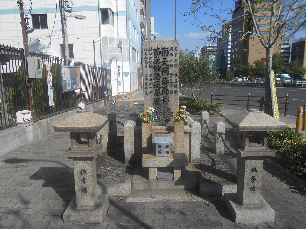 嘉永7年(1854)6月14日、同じく11月4・5日とたてつづけに大坂は大地震に見舞われた(同年11月28日、安政に改元)。その時の被害は、記録により相違するが、大阪市史によると、溺死273名、船の損害約1,800とあり他では死者が600余名になっているものもある。そこで安政2年7月、慰霊をこめて付近の町の人々が発起して建碑したもので、刻文は平易な調子で、その時の被害の様子を述べ、特に津波にふれ、地震をのがれて船に乗ってはいけない、また碑文にはときどき墨を入れて常々読めるようにして、用心するようにと忠告している。