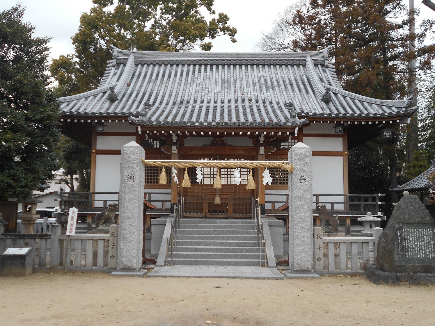 阪神淡路大震災で殆どの建造物が倒壊する被害にあうが、本殿等は修理復元、拝殿・鳥居等は新たに建立された。