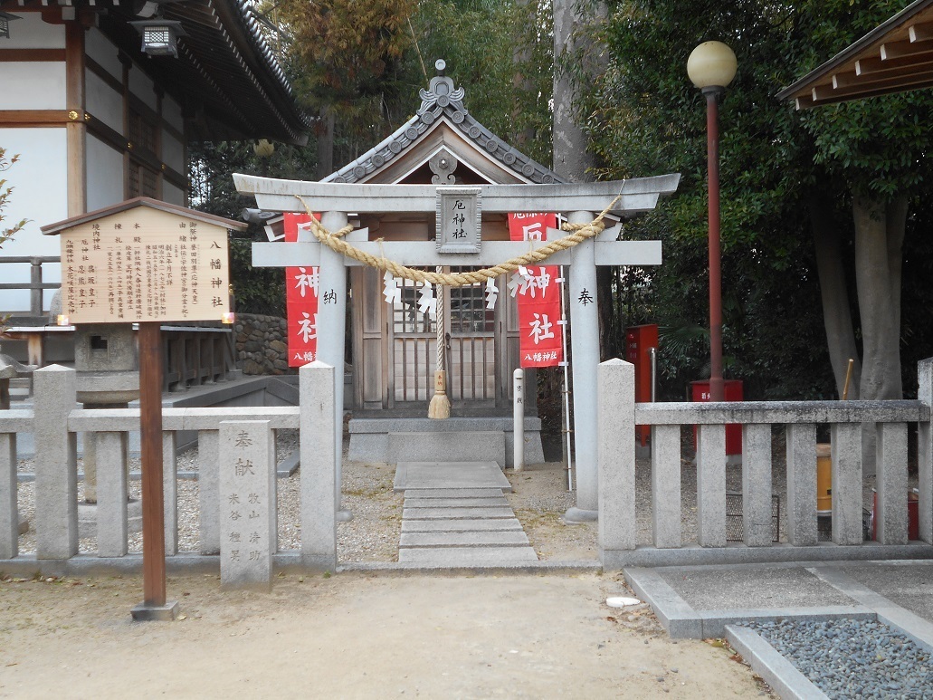 厄神社-祭神:?坂皇子、忍熊皇子(両皇子とも誉田別尊の異母兄で、神功皇后・誉田別尊母子に対し反乱を起こす)