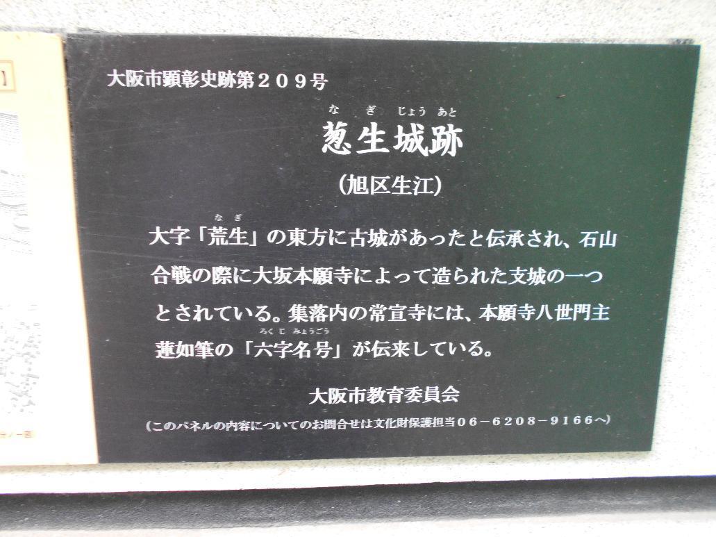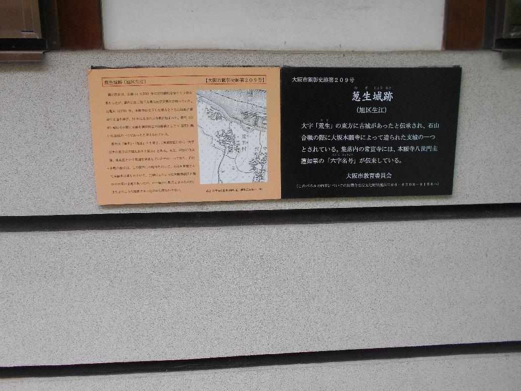 葱生城は大阪府大阪市旭区生江にあった城である。荒生城とも書く。